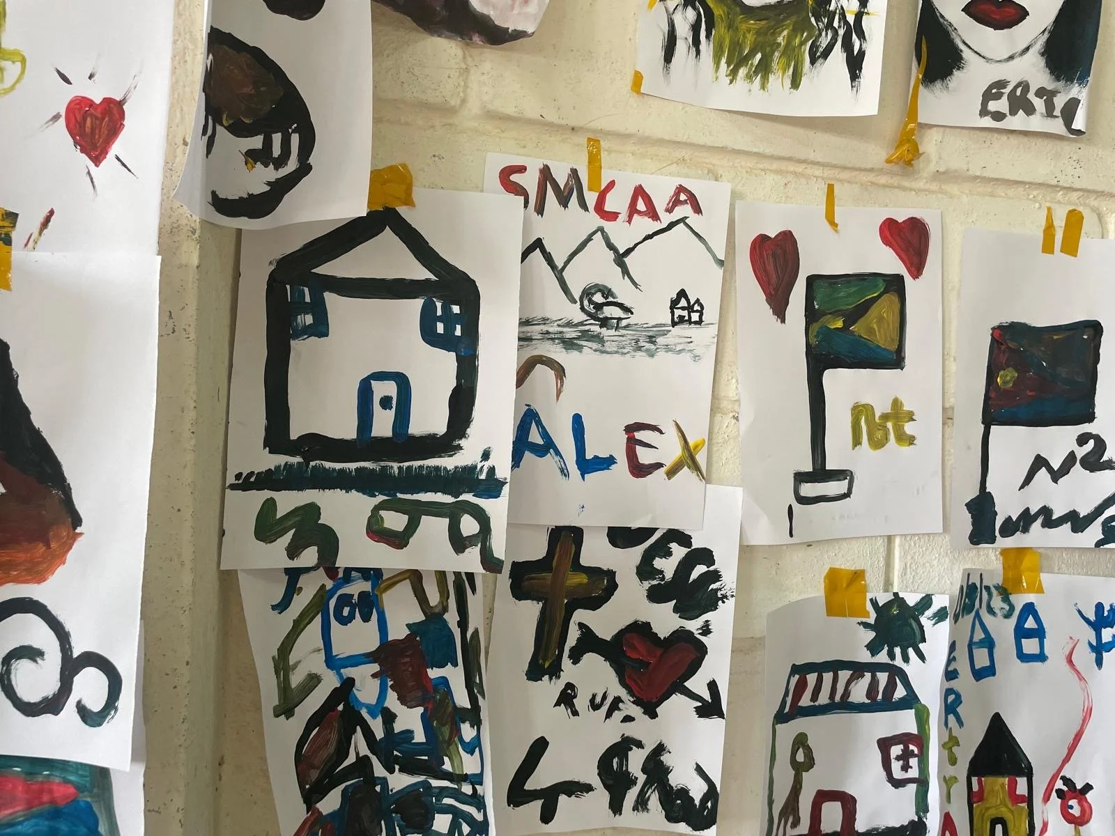 These paintings were made by young children in Asmara, Eritrea. Their images — houses, hearts, flags, mountains — reflect the things that feel familiar and important to them. While many are growing up with the pressures and limits of life in Eritrea, their artwork shows the small symbols of hope, home, and imagination that children hold onto everywhere. This collection offers a simple, honest glimpse into how they see their world.